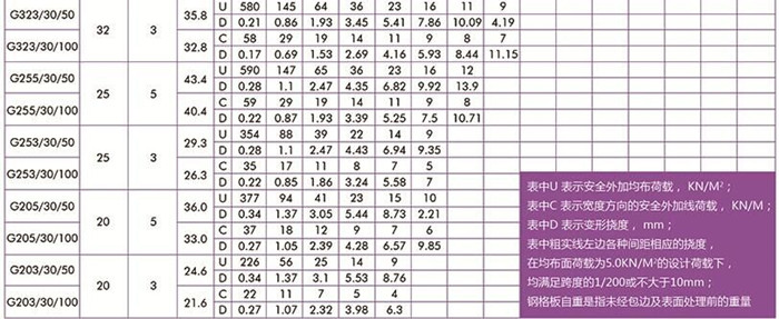 熱鍍鋅鋼格板格柵板承載力荷載、承重對照表